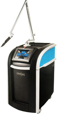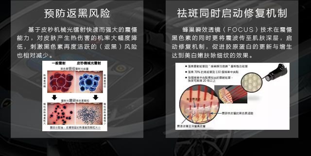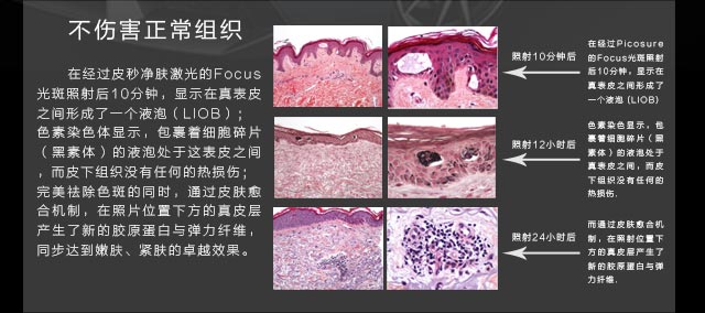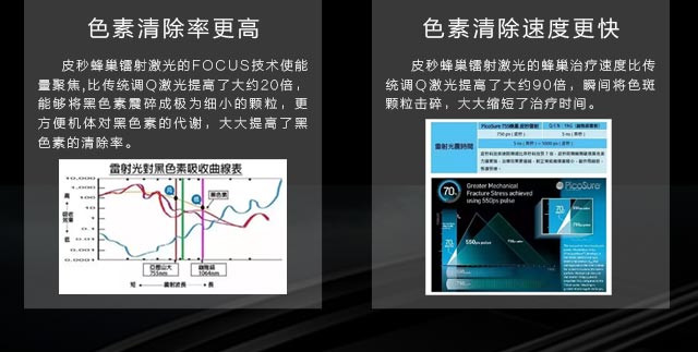 皮秒激光脉宽只有传统Q开关纳秒激光的百分之一,在此超短脉宽下,光能来不及转换为热能,几乎不产生光热效应,而被靶目标吸收后其体积发生膨胀,产生光机械效应被爆破而撕裂成碎片,选择性更强,可以使色素性皮损在更短的治疗次数下,产生更强的疗效。一句话总结,“皮秒激光对色素颗粒击碎更为彻底,而对周围组织的损伤更小。”