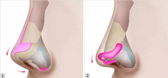 鼻翼软骨上翘也会造成鼻头紧缩的状况,这种情况下可以通过裁剪鼻翼软骨上端,将其向下矫正