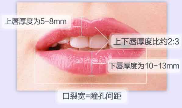 1、 上唇厚度为5-8毫米,下唇厚度为10-13毫米,上下唇厚度比约2:3;