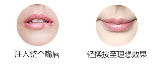 通过针剂将玻尿酸填充物注入真皮皱褶凹陷部位,使嘴唇呈现丰满、圆润