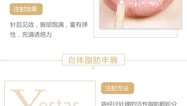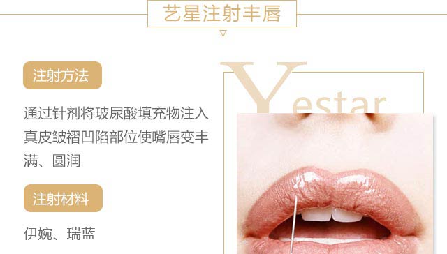 艺星丰唇具有性感、精雕、水润、自然的特点,针对患者的不同需求,采用注射丰唇、自体脂肪丰唇技术,实现求美者要求的理想唇形。