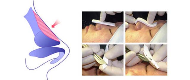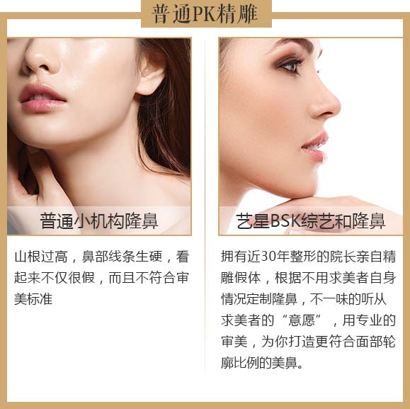 艺星专业医生根据顾客情况雕刻适合的假体,在鼻骨及侧鼻软骨支撑力较强处放置假体。