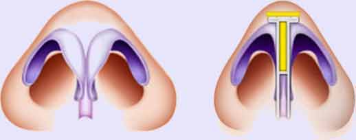 去除皮下组织与多余的肉,增高鼻头。同时进行将耳软骨、鼻中隔软骨植入鼻头,塑造高耸鼻梁。