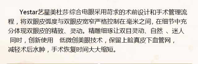 Yestar艺星传承韩式医疗关注细节的特点,从术前的交谈、引导、解惑、预约、减压,术中的治疗、陪护,术后的护理、指导……方方面面提供贴心的服务,让你在视觉、触觉、嗅觉、味觉的真切感知中,体会到艺星对于医疗美容行为的尊重感。