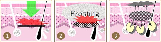 通过将医疗级纳米炭粉涂在脸上,让它渗入毛孔后,再用激光炭粉粒子爆破,从而震碎表皮的污垢及角质;所产生的高热能量传导至真皮层,充分刺激皮肤的更新和活力,激发胶原纤维和弹力纤维的修复,利用肌体的天然修复功能,启动新的胶原蛋白有序沉积和排列,从而实现瞬间祛除幼纹及皱纹、收缩毛孔、平滑皮肤,令肌肤恢复原有弹性。