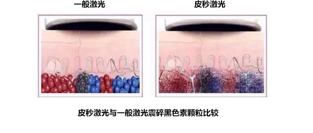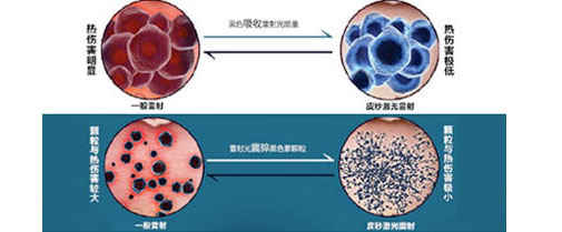 皮秒蜂巢镭射激光755nm波长对黑色素的吸收峰值比普通调Q激光有很大提高,这就意味着作用到皮肤的能量低了,治疗后没有开创性伤口和真层损伤,对皮肤的伤害大大减小。