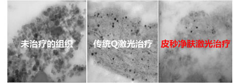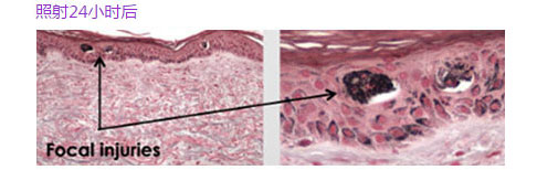 色素染色体显示,包裹着碎片(黑素体)的液泡处于这表皮之间,而皮下组织没有任何的热损伤;
