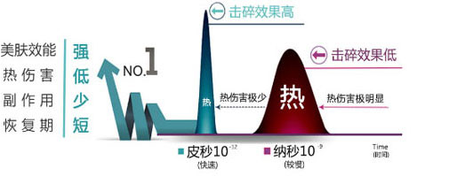 皮秒激光与传统激光不同的就是脉宽(脉冲持续时间),脉宽越短,光转化为热的效应越弱,几乎不产生光热效应,就越不容易向周围完好组织扩散,对靶组织的作用就越强。可以使色素性皮损在更短的治疗次数下,产生更强的疗效;速度更快,能量更强,效果更好,作用更安全。