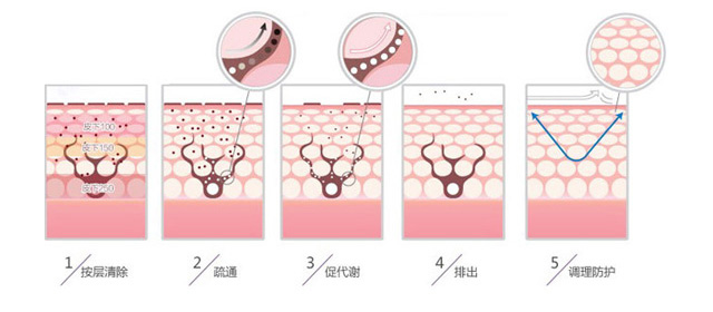 选择性的运用透皮技术吸收技术可直达皮肤真皮层祛斑层层溶解黑色素,同时又为皮肤补水、润白的功效,促进色素代谢,皮肤日渐白嫩。