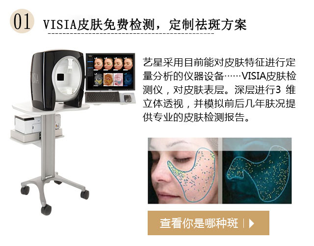 艺星的光学仪器和中药润白精华液导入,两项技术融合,双向瓦解黑色素,阻止斑点再生,针对黄褐斑、雀斑等,效果显著。