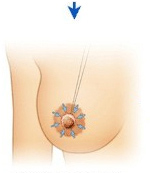 设计新乳晕直径为30-45mm,所以围着乳晕基部切一个直径为5-10mm的圆