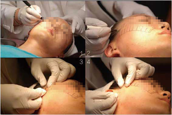 利用医学专业的线进行面部提拉,在进入肌肤后,可在肌肤内造成持续性的刺激,时间约达6~8个月,可促进皮下胶原蛋白及弹力蛋白新生,并放松肌肉,进而改善肌肤松弛下垂的现象,同时还可促进皮下血液循环,使脸部出现自然光泽。