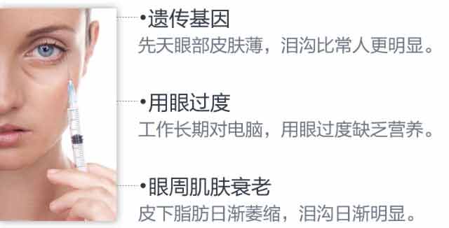 Yestar艺星以注射的方式,将玻尿酸等美容填充挤注入指定的位置,填充泪沟凹陷的效果