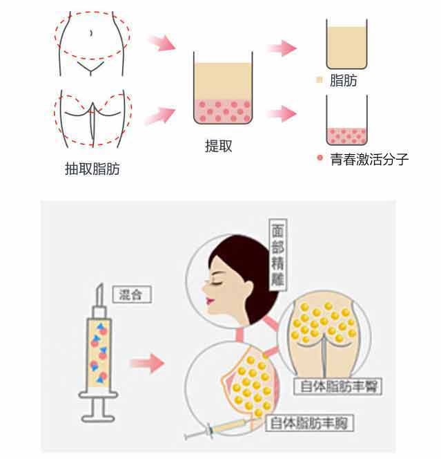 活化技术:提炼 吸脂后对脂肪进行提炼处理,激活脂肪颗粒,使其拥有高度的生物活性,从而具备高度的修复能力和再生能力,确保移植。